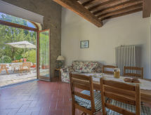 Ladanjska kuća "Castiglioni", zasebna, okružena drvećem i vinogradima. 5 apartmana u residenceu. 11 km od centra mjesta Florenz/Firenze, 2.2 km od centra mjesta Montorsoli, izvan mjesta. Za zajedničko korištenje: parcela 4'000 m2, vrt (nije ograđen) - travnjak i bilje, bazen (11 x 5 m, 100- 120 cm dubok, sezonska dostupnost: 01.May. - 30.Sep.). Vanjski tuš, vrtna garnitura za sjedenje, roštilj. U kući: perilica za rublje (za zajedničko korištenje). Prilaz autom (800 m bijela cesta). Parking na parceli. Trgovina 3 km, supermarket 4 km, autobusna postaja 2 km, željeznička postaja "Florenz/Firenze" 11 km. Pješačke staze od kuće 50 m. Prodaja domaćih poljoprivrednih proizvoda. Dodatna informacija: vlasnik živi na istoj parceli.Interior