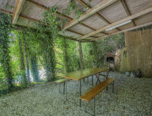 1 -sobna kuća 40 m2 na 2 etaže, u prizemlju. Ukusno uređena: dnevno-spavaća soba s 1 kaučem za 1 osobu (110 cm, dužina 185 cm), stolom za blagovanje i TV-om sa sat. prijemnikom. Otvorena galerija s 1 franc. krevetom (160 cm). Otvorena kuhinja (Plinski štednjak, 4 plamena za kuhanje, kuhalo za vodu, mikrovalna pećnica). Tuš/bidet/WC. Grijanje na plin. Prirodni kameni pod. Terasa. Garnitura za sjedenje, ležaljke (2). Panoramski pogled. Na raspolaganju: Internet (wireless LAN [WLAN], besplatan). Parking (1 automobil). Dodatna informacija: apartman za nepušače. Najviše 1 kućni ljubimac / pas dozvoljen. Vlastiti ulaz. Na licu mjesta nema naplate dodatnih troškova, osim boravišne pristojbe.- postrojenja