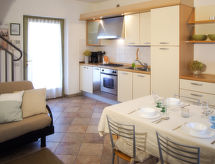 Residence "I Cortivi", na 3 kata. 15 apartmana u residenceu. Iznad mjesta Garda, u samom mjestu 300 m od centra mjesta Costermano, 5 km od centra mjesta Garda, 5 km od jezera. Za zajedničko korištenje: parcela 5'000 m2 (ograđena), vrt - drveće, travnjak za sunčanje, bazen u obliku bubrega (16 x 8 m, sezonska dostupnost: 15.May. - 15.Sep.). Bazen za djecu, vanjski tuš. Supermarket 300 m, šljunčana plaža 5 km. Vlasnik ne prihvaća grupe mladih.Interior