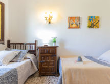 "IBICENCA", 4 -sobna kuća 90 m2. Komforno i lijepo uređena: dnevni boravak/blagovaona s stolom za blagovanje i TV-om sa sat. prijemnikom (plosnatim TV ekranom), klima uređajem. Izlaz na mjesto za sjedenje u vrtu. 1 soba s 1 krevetom (90 cm, dužina 190 cm), 1 franc. krevetom (135 cm, dužina 190 cm), kadom/WC-om. 1 soba s 3 kreveta (90 cm, dužina 190 cm). 1 soba s 2 kreveta (90 cm, dužina 190 cm). Kuhinja (4 ploče za kuhanje, toster, mikrovalna pećnica, zamrzivač, el. aparat za kavu). Kada/WC. Klima uređaj, grijanje toplim zrakom. Garnitura za sjedenje, vrtni roštilj, ležaljke. Na raspolaganju: perilica za rublje, glačalo. Internet (wireless LAN [WLAN], besplatan). Prikladno za obitelji. 2 kućna ljubimca / psa dozvoljena. HUTTE000347- postrojenja