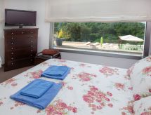 "Ibiza", 5 -sobna kuća 170 m2. Prostrano i svijetlo, vrlo moderno i udobno uređena: dnevni boravak/blagovaona s stolom za blagovanje, TV-om sa sat. prijemnikom i digitalnim TV. Izlaz na terasu, na bazen. 1 bračna soba s 1 franc. krevetom (150 cm, dužina 190 cm), tušem/WC-om i TV-om. 3 bračne sobe, svaka soba s 1 franc. krevetom (135 cm, dužina 190 cm). Velika kuhinja (4 ploče za kuhanje, pećnica, perilica za suđe, mikrovalna pećnica, zamrzivač, el. aparat za kavu). Izlaz na terasu. Tuš/WC. Bez grijanja. Garnitura za sjedenje, vrtni roštilj, ležaljke. Pogled na mjesto. Na raspolaganju: perilica za rublje, glačalo, visoka dječja stolica, dječji krevetić do 3 godine, sušilo za kosu. Internet (wireless LAN [WLAN], besplatan). Parking uz kuću. Prikladno za obitelji. R000000001- postrojenja