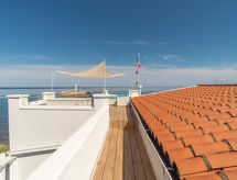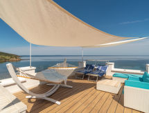 3 -sobna kuća 75 m2. Komforno i udobno uređena: dnevni boravak/blagovaona s TV-om (plosnatim TV ekranom). 2 bračne sobe. Dnevni boravak. Otvorena kuhinja (4 ploče za kuhanje, pećnica, perilica za suđe, zamrzivač). Tuš/bidet/WC. Klima uređaj (uz doplatu). Parketni pod. Velika terasa 60 m2 terasa 30 m2. Garnitura za sjedenje, ležaljke. Vrlo lijep panoramski pogled na more. Na raspolaganju: perilica za rublje. Internet (wireless LAN [WLAN], besplatan). 1 kućni ljubimac / pas dozvoljen.- postrojenja