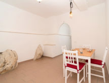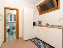 "Il Piccolo Blue", 3 -sobni apartman 65 m2, u prizemlju. Svijetlo, potpuno renoviran godine 2022, svrsishodno i komforno uređen: dnevni boravak/blagovaona s stolom za blagovanje. Izlaz na terasu. 2 bračne sobe. Mala kuhinja (mini pećnica, pećnica, 4 plamena za kuhanje, toster, kuhalo za vodu). Tuš/bidet/WC. Grijanje na plin. Grijanje na raspolaganju samo od 01.11. do 31.03. Lijep panoramski pogled na more, krajolik i mjesto. Na raspolaganju: perilica za rublje, sušilo za kosu. Internet (wireless LAN [WLAN], besplatan). Parking (ograđen). Dodatna informacija: prikladno za obitelji. Nema dizala. Na licu mjesta nema naplate dodatnih troškova, osim boravišne pristojbe.- postrojenja