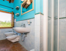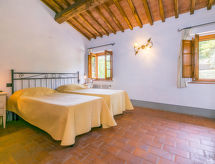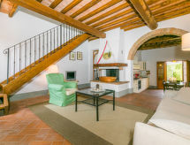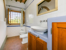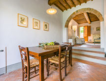 Ladanjska kuća "Francigena", okružena drvećem i poljima. 9 apartmana u residenceu. 6 km od centra mjesta Castelfiorentino, 3 km od centra mjesta Castelnuovo d'Elsa, 30 km od centra mjesta San Gimignano, 100 km od mora. Za zajedničko korištenje: parcela 20'000 m2, vrt - travnjak i drveće, bazen (15 x 9 m, 100- 140 cm dubok, sezonska dostupnost: 01.Apr. - 31.Oct.). Vanjski tuš, terasa, vrtna garnitura za sjedenje, roštilj. U kući: perilica za rublje, sušilica (za zajedničko korištenje, uz doplatu). Parking (za 12 automobila, natkriti) na parceli. Trgovina 3 km, supermarket 6 km, željeznička postaja "Castelfiorentino" 6 km, pješčana plaža "Cecina Mare" 100 km. Dodatna informacija: preporučljiv vlastiti prijevoz.Interior