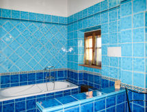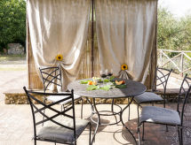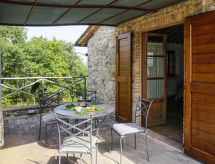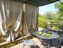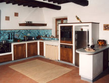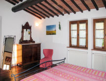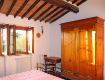 "Il Fienile", 4 -sobna kuća 95 m2 na 2 etaže. Objekt pogodan za 4 odraslih + 2 djece. Prostrano, renovirana, ukusno i udobno uređena: dnevno-spavaća soba s 1 kaučem za 2 osobe, otvorenim kaminom i TV-om sa sat. prijemnikom (plosnatim TV ekranom). Izlaz na terasu. Velika, otvorena kuhinja (pećnica, perilica za suđe, 4 plamena za kuhanje, zamrzivač, el. aparat za kavu) s stolom za blagovanje. Izlaz u vrt. Tuš/bidet/WC. Gornji kat: 1 bračna soba. 1 bračna soba. Izlaz na terasu. Kada/tuš/bidet/WC, duplim umivaonikom. Grijanje na plin (uz doplatu). Prirodni kameni pod. Komforno uređeno u ladanjskom stilu. Terasa (djelomično natkrita), velika terasa 40 m2. Garnitura za sjedenje, vrtni roštilj (prijenosni), ležaljke, ostava. Na raspolaganju: perilica za rublje, visoka dječja stolica, dječji krevetić do 2 godine. Internet (wireless LAN [WLAN], besplatan). Parking (natkrit, 2 automobila). Dodatna informacija: prikladno za obitelji. Apartman za nepušače. Najviše 1 kućni ljubimac / pas dozvoljen.- postrojenja