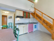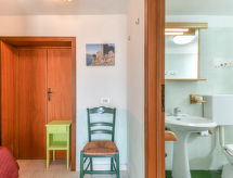 1 -sobni apartman 25 m2 na 2 etaže, u prizemlju. Svrsishodno uređen: dnevno-spavaća soba s 1 krevetom (80 cm), stolom za blagovanje. Kuhinjska niša (4 plamena za kuhanje). Tuš/bidet/WC. Gornji kat: s kosim stropom, otvorena galerija s 1 bračnim krevetom. Grijanje, klima uređaj. Terasa 18 m2 (natkrita). Garnitura za sjedenje. Pogled na vrt. Na raspolaganju: dječji krevetić do 2 godine. Parking (ograđen). Dodatna informacija: apartman za nepušače. Vlastiti ulaz.- Značajke smještaja