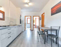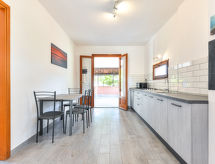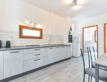 3 -sobni apartman 45 m2, u prizemlju. Svrsishodno uređen: 1 bračna soba. 1 soba s 2 kreveta (80 cm). Kuhinja/dn. boravak (4 plamena za kuhanje, zamrzivač) s stolom za blagovanje. Izlaz na terasu. Tuš/bidet/WC. Grijanje, klima uređaj. Bez grijanja. Terasa 25 m2 (natkrita), vrt 100 m2. Garnitura za sjedenje, vrtni roštilj, ležaljke. Pogled na vrt. Na raspolaganju: dječji krevetić do 2 godine. Parking (natkrit, ograđen). Dodatna informacija: apartman za nepušače. 1 mali kućni ljubimac / pas dozvoljen. Vlastiti ulaz.- Značajke smještaja