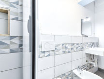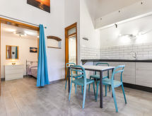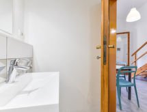 1 -sobni apartman 34 m2 na 2 etaže. Svrsishodno uređen: dnevno-spavaća soba s zavjesom s 2 kreveta (80 cm), stolom za blagovanje. Izlaz na terasu. Kuhinjska niša (4 plamena za kuhanje, zamrzivač). Tuš/bidet/WC. Gornji kat: s kosim stropom, otvorena galerija s 1 bračnim krevetom. Grijanje, klima uređaj. Terasa 25 m2 (natkrita). Garnitura za sjedenje. Pogled na vrt. Na raspolaganju: dječji krevetić do 2 godine. Parking (ograđen). Dodatna informacija: apartman za nepušače. Vlastiti ulaz.- Značajke smještaja
