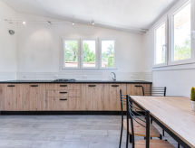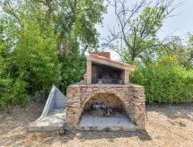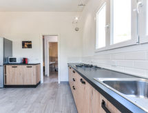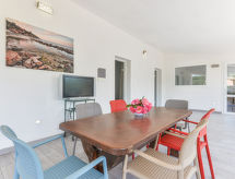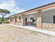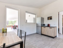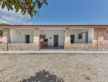 4 -sobna kuća 75 m2, u prizemlju. Svrsishodno i udobno uređena: 2 bračne sobe, svaka soba s tušem/bidetom/WC-om i klima uređajem. Izlaz na terasu. 1 soba s 2 kreveta i klima uređajem. Izlaz na terasu. Kuhinja/dn. boravak (perilica za suđe, 4 plamena za kuhanje, mikrovalna pećnica, zamrzivač) s stolom za blagovanje. Izlaz na terasu. Tuš/bidet/WC. Grijanje, klima uređaj. Terasa 60 m2 (natkrita) terasa 30 m2. Garnitura za sjedenje, vrtni roštilj, ležaljke (4). Pogled na vrt. Na raspolaganju: dječji krevetić do 2 godine. Parking (ograđen, 2 automobila). Dodatna informacija: apartman za nepušače. 1 mali kućni ljubimac / pas dozvoljen. Vlastiti ulaz.- Značajke smještaja