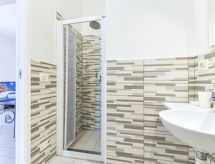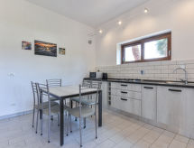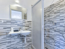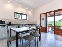 3 -sobni apartman 50 m2, u prizemlju. Renoviran godine 2019, svrsishodno uređen: 1 soba s 1 franc. krevetom (160 cm), klima uređajem. 1 soba s 3 kreveta (80 cm), klima uređajem. Kuhinja/dn. boravak (4 plamena za kuhanje, mikrovalna pećnica, zamrzivač) s stolom za blagovanje. Izlaz na terasu. 2 x tuš/bidet/WC. Terasa 25 m2 (natkrita). Garnitura za sjedenje. Panoramski pogled. Na raspolaganju: dječji krevetić do 2 godine. Parking (ograđen). Dodatna informacija: apartman za nepušače. Vlastiti ulaz.- Značajke smještaja