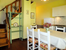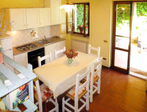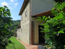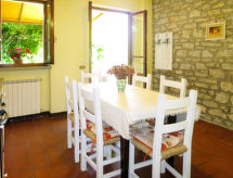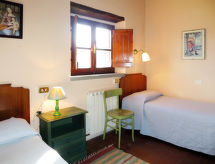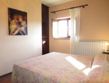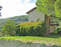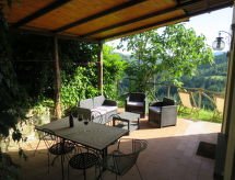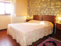 "Il Monte", 4 -sobna polovica dvojne kuće 62 m2 na 2 etaže. Rustikalno uređena: dnevni boravak/blagovaona s kuhinjskim blokom. Izlaz u vrt, na lođu. 1 bračna soba. Kuhinjska niša (pećnica, perilica za suđe, 4 plamena za kuhanje, zamrzivač) s stolom za blagovanje. Tuš/bidet/WC. Gornji kat: 1 soba s 2 kreveta. 1 bračna soba. Izlaz u vrt. Tuš/WC. Grijanje na plin. Terasa (natkrita). Garnitura za sjedenje. Lijep pogled na krajolik. Na raspolaganju: Internet (wireless LAN [WLAN]). Dodatna informacija: kuća za nepušače. Najviše 2 kućna ljubimca / psa dozvoljena. Vlastiti ulaz.- postrojenja