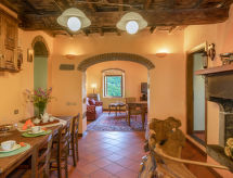 Kuća s 2 apartmana "Il Podere", 450 m n.m.. 7 km od centra mjesta Dicomano, 14 km od centra mjesta Rufina, 40 km od centra mjesta Firenze, na padini, 3 km od jezera, u zelenom. Za samostalno korištenje: prirodno ostavljena parcela, terasasti vrt (nije ograđen), prirodni vrt, bazen u obliku bubrega (7 x 4 m, 150 cm dubok, sezonska dostupnost: 01.May. - 30.Sep.). Vanjski tuš, pergola (9 m2), vrtna garnitura za sjedenje. U kući: perilica za rublje. 600 m dugački strmi, uski prilaz autom (600 m bijela cesta). Parking na parceli. Supermarket 3 km, željeznička postaja "Contea Londa" 5 km, pješčana plaža "Tirrenia" 135 km, jezero za kupanje "Lago di Bilancino" 38 km. Pješačke staze od kuće 100 m. U blizini: Siena 100 km, Arezzo 85 km, San Gimignano 90 km, Autodromo Internazionale del Mugello 35 km, Outlet Barberino del Mugello 45 km. Dodatna informacija: preporučljiv vlastiti prijevoz. Grupe mladih samo na upit. Vlasnik stanuje u zasebnom dijelu kuće.Interior