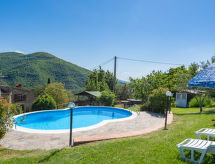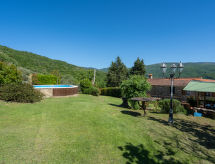4 -sobna kuća 100 m2 na 2 etaže. Ukusno uređena: dnevni boravak s TV-om sa sat. prijemnikom. 1 soba s 1 bračnim krevetom (160 cm). 1 soba s 1 franc. krevetom (160 cm). Otvorena kuhinja (pećnica, 4 plamena za kuhanje, toster, kuhalo za vodu, mikrovalna pećnica, el. aparat za kavu) s kutom za blagovanje. Tuš/bidet/WC, duplim umivaonikom. Grijanje na plin. Gornji kat: 1 soba s 2 kreveta (80 cm). Prirodni kameni pod. Terasa, vrt 400 m2. Garnitura za sjedenje, vrtni roštilj, ležaljke (6), ostava. Panoramski pogled. Na raspolaganju: glačalo, mrežice protiv komaraca, dječji krevetić do 2 godine. Internet (wireless LAN [WLAN], besplatan). Parking (2 automobila) uz kuću. Dodatna informacija: kuća za nepušače. 1 kućni ljubimac / pas dozvoljen.- postrojenja