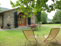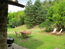 2 -sobna polovica dvojne kuće 55 m2, u prizemlju. Objekt pogodan za 2 odraslih + 2 djece. Rustikalno i ukusno uređena: dnevno-spavaća soba s 1 kaučem za 2 osobe, otvorenim kaminom, stolom za blagovanje, TV-om sa sat. prijemnikom, radiom i CD-om. 1 bračna soba. Kuhinja (4 ploče za kuhanje, pećnica, perilica za suđe, toster, kuhalo za vodu, zamrzivač, el. aparat za kavu) s stolom za blagovanje. Tuš/bidet/WC. Grijanje na naftu (uz doplatu). Prirodni kameni pod. Veliki vrt. Garnitura za sjedenje, vrtni roštilj. Panoramski pogled na krajolik. Na raspolaganju: perilica za rublje, sef, sušilo za kosu. Internet (wireless LAN [WLAN], besplatan). Parking. Dodatna informacija: prikladno za obitelji. Apartman za nepušače. Najviše 1 kućni ljubimac / pas dozvoljen. Vlastiti ulaz.- postrojenja