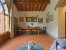 Lijepa ladanjska kuća "Il Poderino", okružena drvećem i livadama. 2 kuće u residenceu. 1.5 km od centra mjesta Cintoia, 12 km od centra mjesta Greve in Chianti, 20 km od centra mjesta Firenze, izolirano, mirno mjesto, 200 m od ruba šume, u zelenom. Za zajedničko korištenje: parcela 20'000 m2, terasasti vrt, livada Za samostalno korištenje: vrtna garnitura za sjedenje, roštilj. Promjena posteljine (dodatno uz doplatu). Promjena ručnika (dodatno uz doplatu). 850 m dugački uski prilaz autom do parceli (bijela cesta). Parking na parceli. Trgovina 5 km, trgovina živežnim namirnicama 5 km, supermarket 5 km, restoran 2 km, pekara 5 km, autobusna postaja "Strada in Chianti" 5 km, željeznička postaja "Figline Valdarno" 16 km, vanjski bazen 12 km. Golf teren 9 km. U blizini: San Gimignano 50 km, Arezzo 61 km, Siena 68 km. Dodatna informacija: preporučljiv vlastiti prijevoz. Prikladno za obitelji, oprema za bebe (uklj.). Na imanju su životinje. Vlasnik živi na istoj parceli. Vlasnik ima psa.Interior