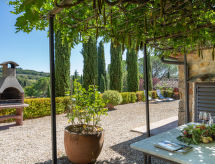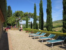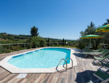 Lijepa, ugodna, rustikalna ladanjska kuća "Il Sangiovese", nadograđena s jedne strane, okružena livadama i vinogradima. 2.5 km od centra mjesta San Gimignano, 30 km od centra mjesta Volterra, 40 km od centra mjesta Siena, sunčano mjesto na padini. Za zajedničko korištenje: lijepi, njegovani terasasti vrt - cvijeće i drveće Za samostalno korištenje: bazen (9 x 4 m, sezonska dostupnost: 01.May. - 30.Sep.). Bazen održava vlasnik/vrtlar. Supermarket 1.7 km, restoran 2.3 km, željeznička postaja "Poggibonsi" 20 km, pješčana plaža "Castiglioncello" 75 km. Golf teren (27 rupa) 30 km. U blizini: Siena 55 km, Volterra 35 km, Firenze 65 km. Dodatna informacija: preporučljiv vlastiti prijevoz. Prodaja domaćih poljoprivrednih proizvoda. Residence s električnom kapijom. Vlasnik živi na istoj parceli.Interior