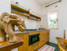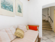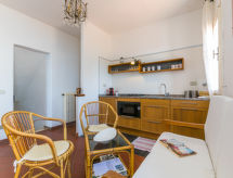 Ugodna kuća s 2 apartmana "Il Sorriso". Mirno mjesto, 100 m od mora. Za zajedničko korištenje: terasasti vrt (ograđen). Vanjski tuš. Za samostalno korištenje: terasa (40 m2), vrtna garnitura za sjedenje. U kući: pristup internetu, perilica za rublje. Put sa stepenicama do kuće. Parking uz kuću. Trgovina 200 m. Golf teren 18 km, tenis 2 km, jahanje konja 6 km.Interior