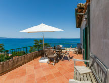 3 -sobni apartman na 2 nivoa 55 m2 na 2 etaže. Svrsishodno i ukusno uređen: 1 mala soba s 2 kreveta. Malo predsoblje. Izlaz u vrt. Gornji kat: dnevni boravak/blagovaona s TV-om. Izlaz na terasu. 1 bračna soba s panoramskim prozorom. Kuhinjska niša (4 ploče za kuhanje, mini pećnica, mikrovalna pećnica, el. aparat za kavu). Izlaz na terasu. Kada/WC. Terasa 40 m2. Balkonski namještaj, mjesto za sjedenje. Prekrasan pogled na more. Na raspolaganju: perilica za rublje, sušilo za kosu. Internet (wireless LAN [WLAN], besplatan). Parking (1 automobil) uz kuću.- postrojenja