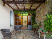 Mala, ugodna obiteljska kuća "Il Terebinto", okružena drvećem i poljima. U četvrti Panegai 4.3 km od centra mjesta Imperia Oneglia, 7.5 km od centra mjesta Porto Maurizio, 31 km od centra mjesta Sanremo, izolirano, povišeno mjesto na padini, 4.5 km od mora, u zelenom. Za samostalno korištenje: prirodno ostavljena parcela 3 ha, terasasti vrt - bilje i drveće. 900 m dugački neravan, strmi prilaz autom. Parking (za 2 automobila) na parceli. Supermarket 3.2 km, željeznička postaja "Imperia" 3.3 km, pješčana plaža "Borgo Marina" 6.5 km, stjenovita plaža 4.5 km. Marina 5.5 km.Interior