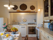 "Il Terebinto (IMP427)", 3 -sobna kuća 100 m2 na 2 etaže. Rustikalno i udobno uređena: otvoreni veliki dnevni boravak s otvorenim kaminom (samo za dekoraciju). Izlaz u vrt. Otvorena kuhinja (pećnica, perilica za suđe, 4 plamena za kuhanje, kuhalo za vodu, el. aparat za kavu) s stolom za blagovanje. Izlaz u vrt. Tuš/WC. Gornji kat: 1 soba s 1 franc. krevetom (150 cm). 1 soba s 1 franc. krevetom (120 cm), 1 ležajem. Kada/WC. Bez grijanja. Terasa 40 m2, vrtna terasa. Garnitura za sjedenje, vrtni roštilj (prijenosni), ležaljke (2). Vrlo lijep panoramski pogled na dolinu, krajolik, šumu i more. Na raspolaganju: perilica za rublje. Internet (wireless LAN [WLAN], besplatan). Dodatna informacija: kuća za nepušače. Najviše 1 kućni ljubimac / pas dozvoljen. CITR: 008031-AGR-0004- Značajke smještaja