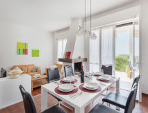 4 -sobna kuća 100 m2. Lijepo i moderno uređena: dnevni boravak/blagovaona s stolom za blagovanje i TV-om sa sat. prijemnikom. Izlaz na terasu. 1 bračna soba. Izlaz na terasu. 1 bračna soba. 1 mala soba, bez ormara s 2 kreveta. Kuhinja (pećnica, perilica za suđe, 4 staklokeramičke ploče za kuhanje, toster, kuhalo za vodu, mikrovalna pećnica, zamrzivač, el. aparat za kavu). Tuš/WC, odv. WC. Grijanje na plin. Terasa 25 m2 (natkrita) terasa 40 m2 (natkrita). Garnitura za sjedenje, električni roštilj, ležaljke. Lijep pogled u daljini na jezero. Na raspolaganju: Internet (wireless LAN [WLAN], besplatan). Parking (ograđen, 3 automobila). Dodatna informacija: apartman za nepušače. Na licu mjesta nema naplate dodatnih troškova, osim boravišne pristojbe. 017180-CNI-00052- postrojenja