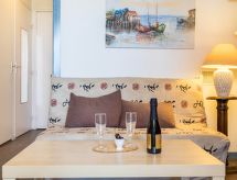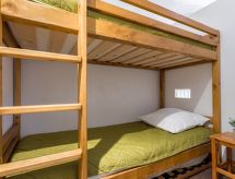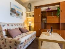 2 -sobni apartman 23 m2 na 5. katu. Jednostavno i svrsishodno uređen: dnevni boravak/blagovaona s TV-om (plosnatim TV ekranom), radiom i ventilatorom. Izlaz na lođu. 1 soba s 1 franc. krevetom (140 cm, dužina 190 cm), ventilatorom. Kabina s 1 x 2 kreveta na kat (90 cm, dužina 190 cm), ventilatorom. Kuhinjska niša (2 staklokeramičke ploče za kuhanje, toster, mikrovalna pećnica, el. aparat za kavu). Tuš, odv. WC. Pogled u daljini na jezero i planine. Na raspolaganju: perilica za rublje, glačalo. Internet (wireless LAN [WLAN], uz doplatu). Dodatna informacija: protupožarni alarm.- Značajke smještaja