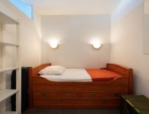 2 -sobni apartman 41 m2 na 4. katu. Dnevni boravak/blagovaona s 1 kaučem za 2 osobe (1 x 140 cm, dužina 190 cm), TV-om (plosnatim TV ekranom), ventilatorom. Izlaz na balkon. 1 mala soba s 1 franc. krevetom (1 x 140 cm, dužina 190 cm). Kabina s 1 krevetom (90 cm, dužina 190 cm). Kuhinjska niša (4 ploče za kuhanje, mini pećnica, toster, kuhalo za vodu, mikrovalna pećnica, el. aparat za kavu). Kada, odv. WC. Balkon 7 m2, prema istoku. Garnitura za sjedenje. Pogled na more. Na raspolaganju: Internet (wireless LAN [WLAN], uz doplatu). Parking. Dodatna informacija: najviše 1 kućni ljubimac / pas dozvoljen. Protupožarni alarm.- Značajke smještaja