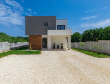 Moderna vila "Irena", na 2 kata. 1 km od centra mjesta Medulin, 500 m od mora, 500 m od plaže. Za samostalno korištenje: parcela 1'000 m2 (ograđena), vrt - travnjak, bazen pravokutni, grijani (8 x 4 m, 140 cm dubok, sezonska dostupnost: 01.Apr. - 01.Nov.) s unutarnjim stepenicama. Vanjski tuš. U kući: pristup internetu, perilica za rublje. Prilaz autom do kuće (500 m bijela cesta). Parking (za 4 automobila) uz kuću na parceli. Trgovina, supermarket 800 m, restoran 1 km, pješčana plaža 2 km, stjenovita plaža 500 m. Vlasnik ne prihvaća grupe mladih. Bazen grijani (uz doplatu). Potrebno je 7 dana unaprijed najaviti ukoliko se želi grijanje bazena.Interior