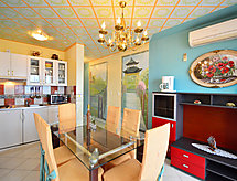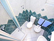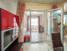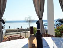4 -sobni apartman 75 m2 na 1. katu, prema istoku. Dnevni boravak/blagovaona s TV-om sa sat. prijemnikom (plosnatim TV ekranom), klima uređajem. Dnevni boravak s 1 kaučem za 1 osobu (140 cm, dužina 200 cm). Izlaz na balkon. 1 soba s 1 franc. krevetom (160 cm, dužina 190 cm). 1 soba s 2 x 1 kreveta na kat (90 cm, dužina 190 cm). Otvorena kuhinja (2 ploče za kuhanje, mikrovalna pećnica, el. aparat za kavu). Tuš/bidet/WC. Klima uređaj (uz doplatu). Balkon 5 m2. Balkonski namještaj. Prekrasan pogled na jezero. Na raspolaganju: Internet (wireless LAN [WLAN], besplatan). 1 kućni ljubimac / pas dozvoljen.- postrojenja
