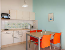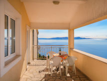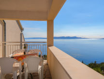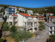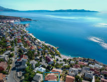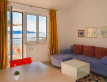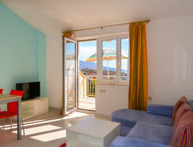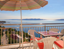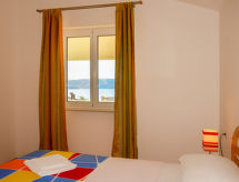 "Ivana (SNJ116)", 2 -sobni apartman 45 m2 na 1. katu. Dnevni boravak/blagovaona s 1 kaučem za 2 osobe (140 cm, dužina 200 cm), TV-om sa sat. prijemnikom i klima uređajem. Izlaz na balkon. 1 soba s 1 franc. krevetom (160 cm, dužina 200 cm). Otvorena kuhinja (2 ploče za kuhanje, toster, kuhalo za vodu, mikrovalna pećnica, el. aparat za kavu). Tuš/WC. Grijanje toplim zrakom. Balkon 9 m2, terasa 11 m2 (natkrita). Garnitura za sjedenje, balkonski namještaj. Lijep pogled na more. Na raspolaganju: Internet (wireless LAN [WLAN], besplatan).- postrojenja
