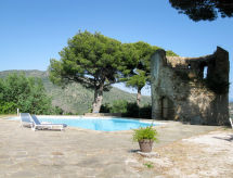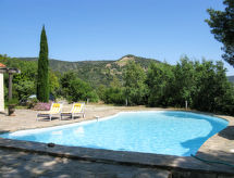 Lijepa kuća "Jalna". Iznad mjesta Bormes-les-Mimosas 500 m od centra mjesta Bormes-les-Mimosas, na rubu mjesta, 5 km od centra mjesta Le Lavandou, 42 km od centra mjesta Toulon, povišeno mjesto na padini, 5 km od mora. Za samostalno korištenje: terasasti vrt, 4 ha - bilje i drveće, prirodni vrt, bazen (14 x 7 m, sezonska dostupnost: 01.Jan. - 31.Dec.) s alarmnim uređajem. Terasa. 150 m dugački prilaz autom (bijela cesta). Parking na parceli. Trgovina 500 m, pješčana plaža "Le Lavandou" 5 km. U blizini: windmill ruin - ruine d'un moulin à vent 20 m.Interior