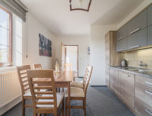 Komforna kuća zasebna. Na rubu mjesta, 2.3 km od centra mjesta Černý Důl, mirno, sunčano mjesto, 1.5 km od jezera, 3 km od skijališta. Za samostalno korištenje: parcela, bazen okrugli (sezonska dostupnost: 01.Jun. - 30.Sep.). Terasa, vrtna garnitura za sjedenje, roštilj, ognjište. Parking (za 2 automobila) na parceli. Trgovina živežnim namirnicama 3 km, supermarket 7.5 km, restoran 200 m, autobusna postaja "Černý Důl, Čistá-pošta" 200 m, pješčana plaža 1.5 km, natkriveni bazen 19 km. Golf teren (18 rupa) 14 km, tenis 2.5 km, sportski centar 2.5 km, pješačke staze od kuće, biciklistička staza 100 m, skilift 3 km, sjedežnica 3 km, skijaške staze 3 km, najam skijaške opreme 3 km, postaja ski busa 100 m, škola skijanja 3 km, škola skijanja za djecu 3 km, staza za sanjkanje 7 km, staza za skijaško trčanje 10 m. U blizini: Janské Lázně Spa 9 km, Vrchlabí 10 km, Aquapark Trutnov 25 km, Zoo Safari Dvůr Králové 29 km, Bozkovské jeskyně 37 km, Adršpašské skály 44 km. Poznata skijališta u blizini: Černý Důl 3 km, Herlíkovice 15 km, Pec pod Sněžkou 20 km, Špindlerův Mlýn 26 km. Poznata jezera u blizini: Čistá 1.5 km, Vrchlabí 9 km. Pješačke staze: Sněžka 25 km.Interior