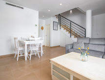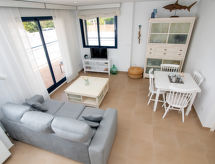 Velika, vrlo lijepa, vrlo komforna dvojna kuća "Jardines de Denia V", na 2 kata. Les Marines 7 km od centra mjesta Denia, mirno, sunčano mjesto, 50 m od mora, 50 m od plaže, direktan pristup na plažu. Za zajedničko korištenje: parcela (ograđena) - travnjak i drveće, bazen (15 x 7 m, 110- 210 cm dubok, sezonska dostupnost: 01.Jan. - 31.Dec.) s unutarnjim stepenicama. Bazen za djecu, vanjski tuš. Za samostalno korištenje: - travnjak i drveće. Vrtna garnitura za sjedenje, roštilj. Parking na parceli. Supermarket 1.2 km, restoran, cafe 450 m, pješčana plaža "Platja de l'Estanyó" 50 m. Sportska lučica 7.5 km, marina 7.5 km, škola jedrenja na dasci 3 km, škola jedrenja 3 km, tenis 6 km. Vlasnik ne prihvaća grupe mladih.Interior