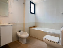"Jardines de Denia V", 4 -sobna polovica dvojne kuće 105 m2 na 2 etaže. Prostrano i svijetlo, vrlo lijepo i udobno uređena: dnevni boravak/blagovaona s digitalnim TV, klima uređajem i grijanjem na topli zrak. Izlaz na mjesto za sjedenje u vrtu. 1 soba s 1 krevetom na izvlačenje (2 osobe 2 x 90 cm, dužina 190 cm), klima uređajem i grijanjem na topli zrak. Kuhinja (pećnica, perilica za suđe, 4 staklokeramičke ploče za kuhanje, mikrovalna pećnica, zamrzivač, el. aparat za kavu). Tuš/WC. Gornji kat: 1 soba s 1 franc. krevetom (160 cm, dužina 190 cm), klima uređajem i grijanjem na topli zrak. Izlaz na terasu. 1 soba s 2 kreveta (90 cm, dužina 190 cm), klima uređajem i grijanjem na topli zrak. Kada/bidet/WC. Vrtna terasa, travnjak. Garnitura za sjedenje, vrtni roštilj. Vrlo lijep pogled na more. Na raspolaganju: perilica za rublje, glačalo, visoka dječja stolica, dječji krevetić, sušilo za kosu. Internet (wireless LAN [WLAN], besplatan). Parking. Dodatna informacija: TV samo ES. VT-492461-A- Aktivnosti u blizini