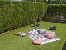 "Jardines de Denia VI", 4 -sobni apartman 80 m2. Prostrano i svijetlo, vrlo lijepo i ukusno uređen: dnevni boravak/blagovaona s digitalnim TV, klima uređajem i grijanjem na topli zrak. Izlaz na mjesto za sjedenje u vrtu, na bazen. 1 soba s 1 franc. krevetom (140 cm, dužina 200 cm), klima uređajem i grijanjem na topli zrak. 1 soba s 1 franc. krevetom (140 cm, dužina 200 cm), klima uređajem i grijanjem na topli zrak s 1 krevetom na izvlačenje (2 osobe 2 x 80 cm, dužina 200 cm), klima uređajem i grijanjem na topli zrak. Kuhinja (pećnica, perilica za suđe, 4 staklokeramičke ploče za kuhanje, toster, mikrovalna pećnica, zamrzivač, el. aparat za kavu). 2 x tuš/WC. Velika terasa, velika vrtna terasa. Garnitura za sjedenje, ležaljke. Na raspolaganju: perilica za rublje, glačalo, visoka dječja stolica, dječji krevetić, sušilo za kosu. Internet (wireless LAN [WLAN], besplatan). Garaža. Dodatna informacija: TV samo ES. VT-489499-A- postrojenja