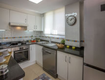 Vrlo veliki, vrlo lijepi, vrlo komforni stambeni objekt "Jardines de Denia VI". U samom mjestu 2 km od centra mjesta Dénia, mirno mjesto, 850 m od mora, 850 m od plaže. Za zajedničko korištenje: lijepi, njegovani vrt - travnjak, bazen (16 x 8 m, 80- 210 cm dubok, sezonska dostupnost: 01.Jan. - 31.Dec.). Vanjski tuš. U kući: dizalo. Zajednička garaža. Supermarket 950 m, restoran 700 m, bar 450 m, cafe 950 m, pješčana plaža "Playa Calamar" 850 m. Sportska lučica 2.5 km, škola jedrenja na dasci 1.5 km, tenis 950 m. Vlasnik ne prihvaća grupe mladih.Interior