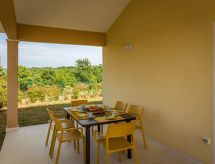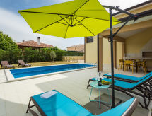 4 -sobna kuća 140 m2 na 2 etaže. Dnevni boravak/blagovaona s 1 kaučem za 2 osobe (200 cm, dužina 200 cm), TV-om sa sat. prijemnikom (plosnatim TV ekranom), klima uređajem. Izlaz na terasu. 1 soba s 1 franc. krevetom (160 cm, dužina 200 cm), tušem/WC-om i klima uređajem. Otvorena kuhinja (pećnica, perilica za suđe, 4 staklokeramičke ploče za kuhanje, toster, kuhalo za vodu, mikrovalna pećnica, zamrzivač, el. aparat za kavu). Odv. WC. Gornji kat: 1 soba s 1 franc. krevetom (160 cm, dužina 200 cm), tušem/WC-om i klima uređajem. Izlaz na balkon. 1 soba s 2 kreveta (90 cm, dužina 200 cm), tušem/WC-om i klima uređajem. Grijanje toplim zrakom. Balkon 3 m2, terasa 12 m2. Garnitura za sjedenje, ležaljke (6). Na raspolaganju: sef, glačalo, mrežice protiv komaraca, visoka dječja stolica, dječji krevetić, sušilo za kosu. Internet (wireless LAN [WLAN], besplatan). Dodatna informacija: kuća za nepušače.- postrojenja
