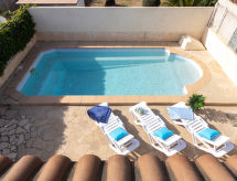 Riumar 10 km od mjesta Deltebre: Moderna, lijepa kuća "Jenaro". Mirno, sunčano mjesto, 100 m od mora, 100 m od plaže, prijeći cestu. Za samostalno korištenje: parcela (ograđena), bazen u obliku bubrega (3 x 7 m, 110- 160 cm dubok, sezonska dostupnost: 01.Jan. - 31.Dec.) s unutarnjim stepenicama. Vanjski tuš, pergola. Parking uz kuću, garaža za 1 auto. Trgovina, trgovina živežnim namirnicama, restoran, bar 300 m. Grupe mladih samo na upit.Interior