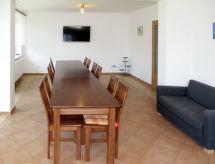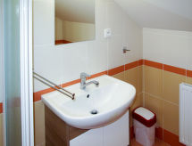 7 -sobna kuća 220 m2 na 4 etaže. Prostrano i svijetlo, renovirana godine 2012, lijepo uređena: dnevni boravak/blagovaona s stolom za blagovanje, TV-om sa sat. prijemnikom i radiom. Izlaz na balkon. Kuhinja (4 ploče za kuhanje, pećnica, perilica za suđe, toster, kuhalo za vodu, mikrovalna pećnica, el. aparat za kavu). 2 x odv. WC. Grijanje na plin. Donji kat: 2 x tuš, 2 x odv. WC, hidromasažnom kadom. Grijanje na plin. Gornji kat: 1 soba s 2 kreveta i kadom/WC-om. 1 soba s 1 krevetom i 1 bračnim krevetom. Izlaz na balkon. 1 soba s 1 krevetom. Izlaz na balkon. Tuš/WC. Grijanje na plin. Potkrovlje 1 soba s kosim stropom s 2 kreveta i tušem/WC-om. 1 soba s kosim stropom s 2 kreveta. 1 soba s kosim stropom s 2 kreveta. Tuš/WC. Grijanje na plin. 2 velika balkona. Balkonski namještaj. Panoramski pogled. Na raspolaganju: perilica za rublje. Internet (wireless LAN [WLAN], besplatan). Dodatna informacija: apartman za nepušače. Najviše 2 kućna ljubimca / psa dozvoljena.- Značajke smještaja