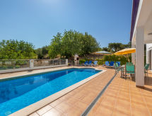 "Casa Joaquim", 4 -sobna kuća 115 m2 na 2 etaže. Svijetlo, moderno uređena: dnevni boravak/blagovaona s otvorenim kaminom, stolom za blagovanje, TV-om sa sat. prijemnikom i DVD-om. Izlaz na terasu. 1 soba s 2 kreveta (90 cm, dužina 195 cm). Izlaz na terasu. Kuhinja (pećnica, perilica za suđe, 4 staklokeramičke ploče za kuhanje, toster, kuhalo za vodu, mikrovalna pećnica, zamrzivač, el. aparat za kavu) s stolom za blagovanje. Tuš/WC. El. grijanje, klima uređaj. Grijanje samo u pojedinim prostorijama. Gornji kat: 1 soba s 1 bračnim krevetom (160 cm, dužina 200 cm). Izlaz na balkon. 1 soba s 2 kreveta (90 cm, dužina 195 cm). Izlaz na balkon. Kada/WC, tuš/WC. 2 balkona 13 m2, balkon 9 m2, terasa 135 m2 terasa 70 m2. Garnitura za sjedenje, vrtni roštilj, ležaljke (6). Na raspolaganju: perilica za rublje, sef, glačalo, visoka dječja stolica, dječji krevetić, sušilo za kosu. Internet (wireless LAN [WLAN], besplatan). Dodatna informacija: kuća za nepušače. Protupožarni alarm, vatrogasni aparat. 25818/AL- Značajke smještaja