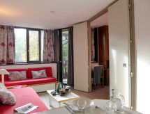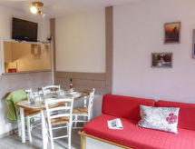 2 -sobni apartman 33 m2 na 1. katu. Dnevni boravak/blagovaona s 2 kreveta (80 cm, dužina 180 cm), TV-om. Izlaz na balkon. 1 soba s 1 franc. krevetom (140 cm, dužina 190 cm). Kuhinjska niša (2 ploče za kuhanje, pećnica, perilica za suđe, kuhalo za vodu, el. aparat za kavu). Kada, odv. WC. El. grijanje. Balkon, prema jugozapadu. Na raspolaganju: Internet (wireless LAN [WLAN], uz doplatu). Dodatna informacija: TV samo FR. Protupožarni alarm.- Značajke smještaja