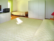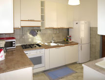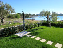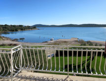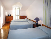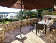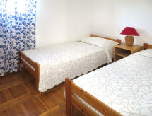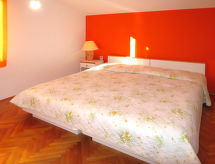 6 -sobna kuća 148 m2 na 2 etaže. Dnevni boravak/blagovaona s TV-om sa sat. prijemnikom. Izlaz na terasu. 1 soba s 1 bračnim krevetom. 1 soba s 2 kreveta. Otvorena kuhinja (pećnica, perilica za suđe, 4 plamena za kuhanje, toster, kuhalo za vodu, mikrovalna pećnica, zamrzivač, el. aparat za kavu). Kada/WC, odv. WC. Gornji kat: 1 soba s 1 bračnim krevetom. 1 soba s 3 kreveta i tušem/WC-om. Izlaz na balkon. 1 soba s 1 krevetom, 1 bračnim krevetom i tušem/WC-om. Izlaz na balkon. Tuš/WC. Klima uređaj, grijanje toplim zrakom. Balkon. Ležaljke. Pogled na more. Na raspolaganju: perilica za rublje. Internet (wireless LAN [WLAN], besplatan). Dodatna informacija: kuća za nepušače. Pri rezervaciji po cijeni za 8 osoba, 2 spavaće sobe ostaju zaključane.- Značajke smještaja