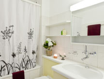 "Junior Suite 1-4", 2 -sobni apartman 50 m2 na 1. katu, prema jugu. Moderno i ukusno uređen: dnevni boravak/blagovaona s 1 kaučem za 2 osobe (160 cm, dužina 200 cm), TV-om sa sat. prijemnikom, plosnatim TV ekranom i radiom. Izlaz na balkon. 1 bračna soba s 1 bračnim krevetom (2 x 90 cm, dužina 200 cm). Kuhinja (pećnica, perilica za suđe, 4 staklokeramičke ploče za kuhanje, el. aparat za kavu, Doze za mašinu za kavu (Nespresso) uz doplatu). Kada/WC. Grijanje. Balkon. Garnitura za sjedenje. Pogled na krajolik. Na raspolaganju: Internet (wireless LAN [WLAN], besplatan). Dodatna informacija: apartman za nepušače. Najviše 1 kućni ljubimac / pas dozvoljen.- postrojenja