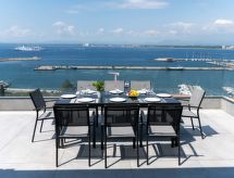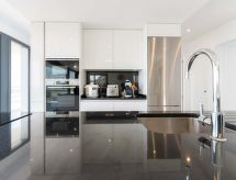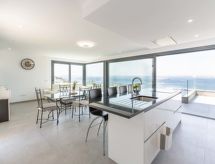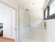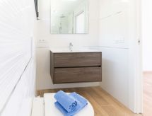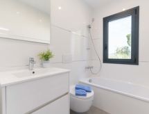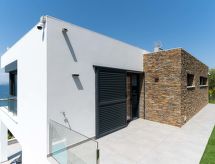 Moderna, komforna, luksuzna vila "KAIA", na 2 kata, godina izgradnje 2021. 400 m od centra mjesta Roses, mirno, sunčano mjesto na brežuljku, u četvrti s vilama, 200 m od mora, 500 m od plaže, prema jugozapadu. Za samostalno korištenje: lijepi, njegovani terasasti vrt - travnjak, bazen pravokutni (8 x 4 m, 100- 200 cm dubok, sezonska dostupnost: 01.May. - 30.Oct.) s unutarnjim stepenicama. Vanjski tuš, terasa, vrtna garnitura za sjedenje. Parking (za 3 automobila, natkriti). Supermarket, restoran, bar 500 m, pekara 700 m, pješice 5 minuta do centra, pješčana plaža "Cala de Canyelles Petites" 2.2 km, plaža s oblucima "Cala Montjoi" 5 km, stjenovita plaža "Cap de Creus" 10 km, ronilački centar 400 m. Sportska lučica, marina 500 m, golf teren (15 rupa) 14 km, škola jedrenja na dasci 500 m, škola jedrenja 500 km, tenis hala 2 km, minigolf 2 km, sportski centar 2 km, pješačke staze od kuće 600 m. U blizini: Aqua Park 9 km, Casino y Festival de Perelada 15 km, Campo de Golf Perelada 15 km, Ruinas de Empuries 25 km, Museo Dali Figueres 20 km, Cadaqués/ Cap de Creus 25 km. Dodatna informacija: dizalo samo do 1. kata. Vlasnik ne prihvaća grupe. Vlasnik ne prihvaća grupe mladih.Interior