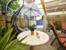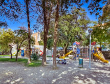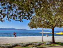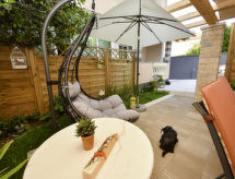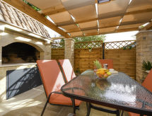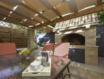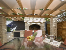 "Katarina", 3 -sobni apartman 60 m2, u prizemlju, prema jugu. Dnevni boravak/blagovaona 25 m2 s 1 kaučem za 1 osobu (140 cm, dužina 200 cm), TV-om i klima uređajem. Izlaz na terasu. 1 soba s 1 bračnim krevetom (2 x 80 cm, dužina 200 cm). 1 soba s 2 kreveta (90 cm, dužina 200 cm). Otvorena kuhinja (4 ploče za kuhanje, pećnica, mikrovalna pećnica, zamrzivač, el. aparat za kavu). Tuš/WC. Klima uređaj (uz doplatu). Terasa 5 m2 (natkrita). Garnitura za sjedenje, vrtni roštilj (prijenosni). Na raspolaganju: perilica za rublje, glačalo, sušilo za kosu. Internet (wireless LAN [WLAN], besplatan). 1 kućni ljubimac / pas dozvoljen.- postrojenja