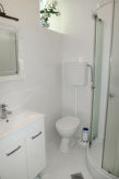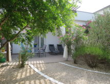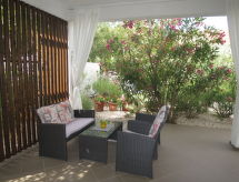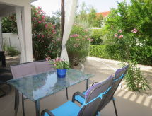 "Katarina (SRD330)", 3 -sobna kuća 60 m2. Dnevni boravak s 2 kauča za 1 osobu, TV-om sa sat. prijemnikom i klima uređajem. Izlaz na terasu. 1 soba s 1 franc. krevetom (160 cm). Kuhinja (2 ploče za kuhanje, perilica za suđe, toster, kuhalo za vodu, mikrovalna pećnica, zamrzivač, el. aparat za kavu) s stolom za blagovanje i klima uređajem. Tuš/WC. Grijanje toplim zrakom. Ležaljke (2). Na raspolaganju: glačalo. Internet (wireless LAN [WLAN], besplatan). Dodatna informacija: kuća za nepušače.- postrojenja