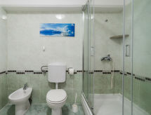 3 -sobni apartman 65 m2, u suterenu, prema jugoistoku. Moderno i udobno uređen: dnevni boravak/blagovaona 30 m2 s TV-om sa sat. prijemnikom i DVD-om. 1 soba s 1 franc. krevetom (160 cm). 1 soba s 2 kreveta. Otvorena kuhinja (4 ploče za kuhanje, pećnica, zamrzivač). Tuš/bidet/WC. Grijanje (uz doplatu). Terasa 15 m2. Garnitura za sjedenje. Pogled na vrt. Na raspolaganju: perilica za rublje. Internet (wireless LAN [WLAN], besplatan). Dodatna informacija: vlastiti ulaz. Visoko postavljeni prozori u spavaćim sobama.- postrojenja