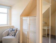 5 -sobna polovica dvojne kuće na 2 etaže. Objekt pogodan za 6 + 2 djece. Prostrano, komforno uređena: dnevni boravak/blagovaona s plosnatim TV ekranom. Otvorena kuhinja (4 ploče za kuhanje, pećnica, perilica za suđe, mikrovalna pećnica, zamrzivač). Odv. WC. Gornji kat: 2 bračne sobe, svaka soba s 1 bračnim krevetom. 1 soba s 2 kreveta. 1 soba s 1 x 2 kreveta na kat. Kada/WC, tuš/WC. El. grijanje. Pogled na more. Na raspolaganju: perilica za rublje, sušilica, visoka dječja stolica, dječji krevetić do 2 godine. Internet (wireless LAN [WLAN], besplatan). Dodatna informacija: kuća za nepušače. 2 kućna ljubimca / psa dozvoljena.- Značajke smještaja