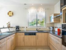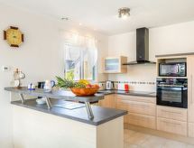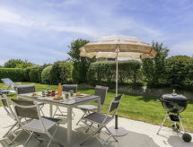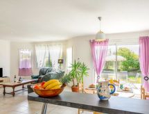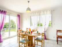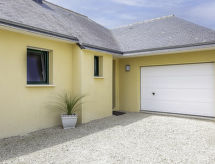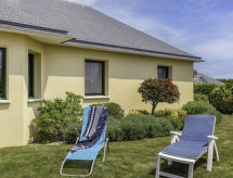 "Ker Laouen (KER214)", 4 -sobna kuća 100 m2. Svijetlo, lijepo uređena: dnevni boravak/blagovaona s stolom za blagovanje, TV-om sa sat. prijemnikom i međunarodnim TV kanalima. Izlaz na terasu. 2 sobe, svaka soba s 1 franc. krevetom (140 cm, dužina 190 cm). 1 soba s 2 kreveta (90 cm, dužina 190 cm). Otvorena kuhinja (pećnica, perilica za suđe, 3 Indukcione ploče, toster, kuhalo za vodu, mikrovalna pećnica, zamrzivač, el. aparat za kavu). Kada/tuš, odv. WC, duplim umivaonikom. El. grijanje, podno grijanje. Parketni pod. Terasa, prema jugu. Garnitura za sjedenje, vrtni roštilj (prijenosni), ležaljke (2). Na raspolaganju: perilica za rublje, sušilica, visoka dječja stolica, dječji krevetić, sušilo za kosu. Dodatna informacija: kuća za nepušače. Protupožarni alarm.- Značajke smještaja