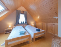 "Villa Kievit", 5 -sobna vila na 2 etaže. Objekt pogodan za 4 odraslih + 2 djece. Prostrano, vrlo komforno i udobno uređena: predsoblje s odv. WC-om. Veliki dnevni boravak/blagovaona s verandom s stolom za blagovanje. Izlaz u vrt, na terasu. Velika kuhinja (pećnica, perilica za suđe, 5, toster, kuhalo za vodu, mikrovalna pećnica, zamrzivač, el. aparat za kavu). Gornji kat: 1 bračna soba s 1 bračnim krevetom (1 x 180 cm, dužina 200 cm). 2 sobe, svaka soba s 2 kreveta (80 cm, dužina 200 cm). Tuš/WC. Grijanje. Velika terasa, veliki vrt. Garnitura za sjedenje, ležaljke. Lijep pogled na vrt. Na raspolaganju: sauna, sušilo za kosu. Internet (wireless LAN [WLAN], besplatan). Parking (ograđen, 3 automobila). Dodatna informacija: prikladno za obitelji. Kuća za nepušače. Protupožarni alarm, vatrogasni aparat.- postrojenja